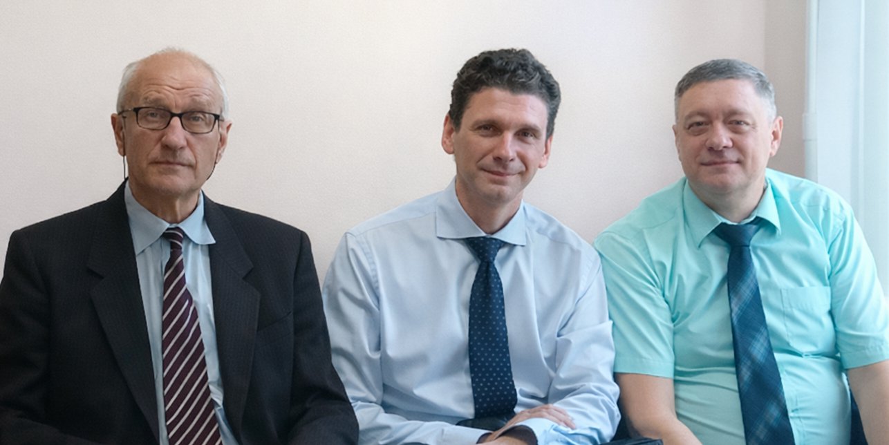 Left to right: Valeriy Tolmazov, Maksim Barbazyuk, and Aleksandr Kostyuk in the courtroom. November, 2025.
