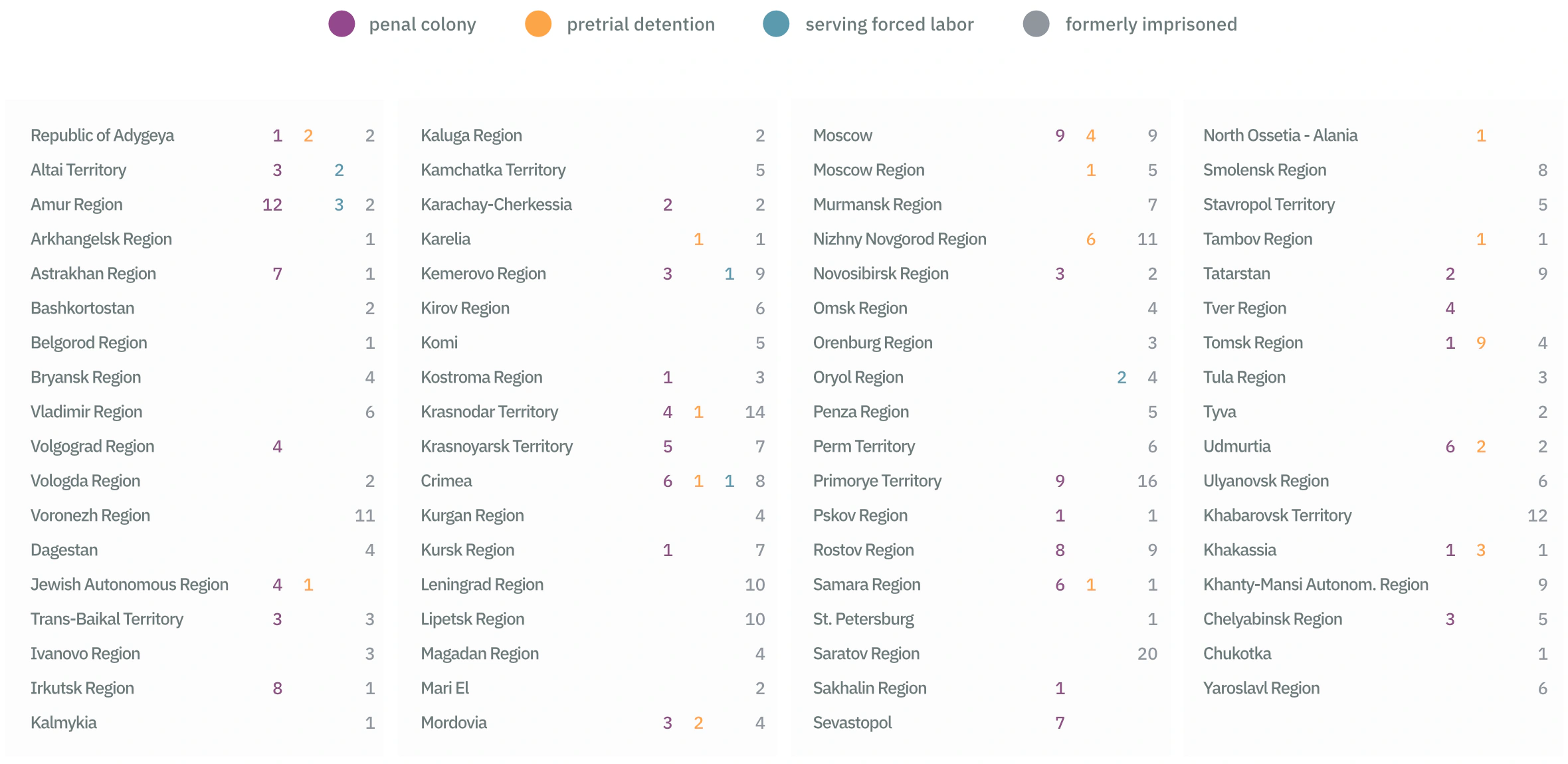 Unione Europea, Sakha (Jacuzia), Crimea, Cakassia, Regione di Murmansk, Regione di Magadan, Regione di Smolensk, Regione di Kemerovo, Regione di Kirov, Regione di Orël, Territorio di Khabarovsk, Regione di Penza, Regione di Novosibirsk, Territorio di Krasnodar