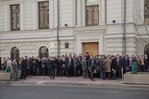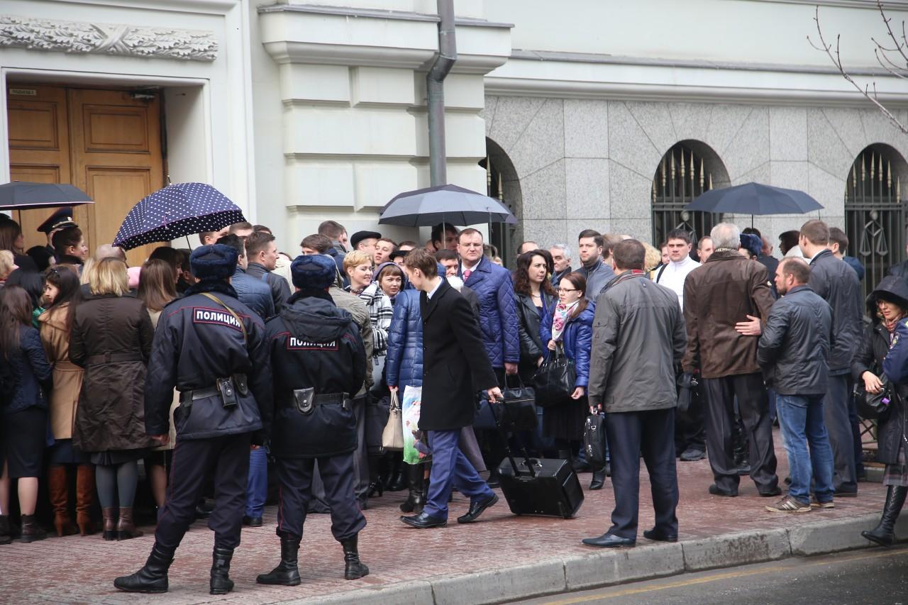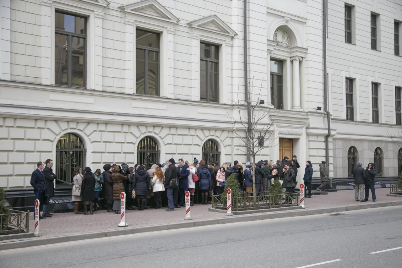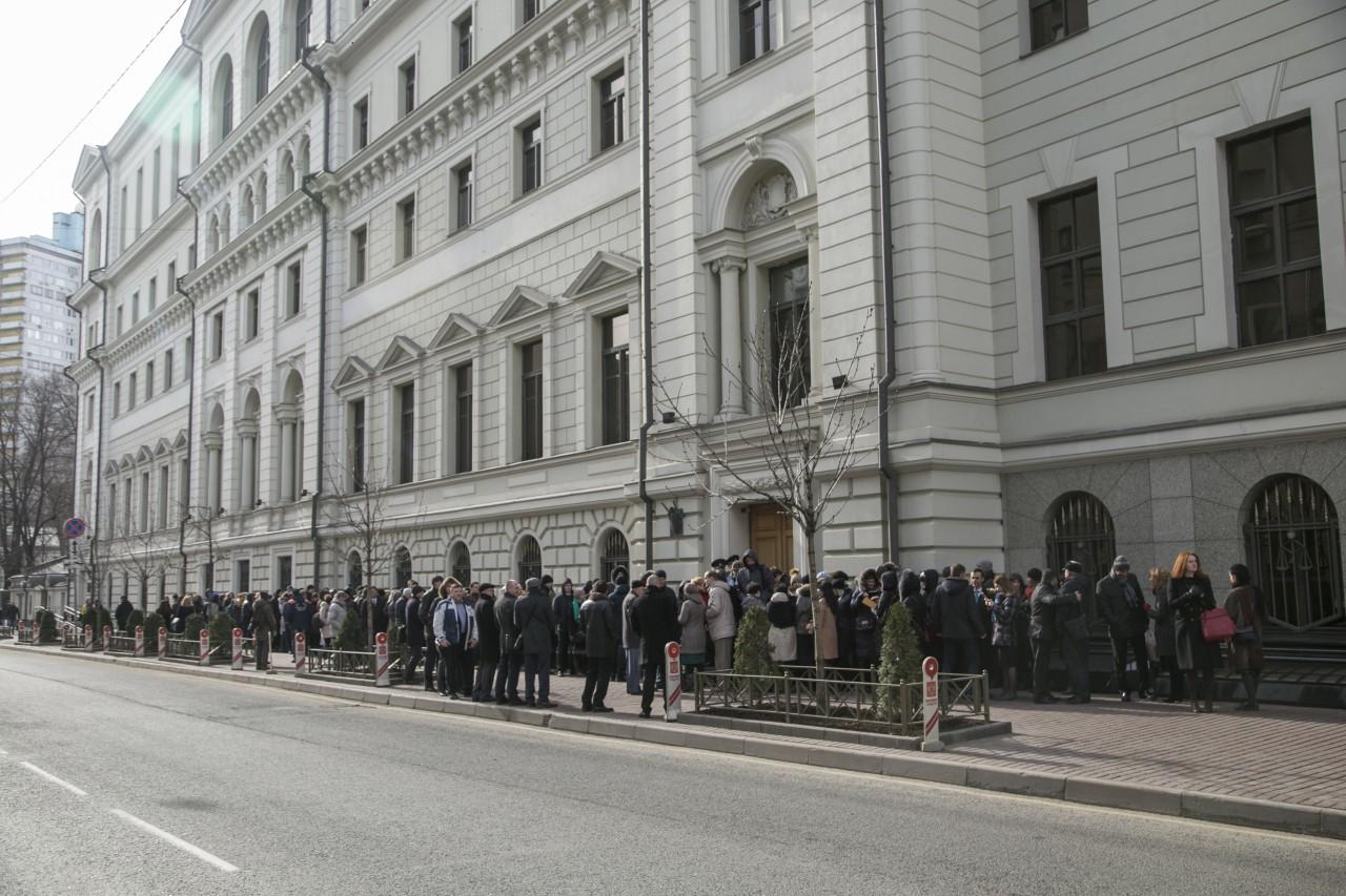 | 9:00 | 最高裁判所の建物の正面は、これまで以上に混雑しています。夜になると行列ができ始めました。多い 特にロシアのさまざまな都市から来ました。モスクワの天気は寒いので、ほとんどの人が服を着ています 冬に。時々、誰かが並んでいる人のためにコーヒーやパイを持ってきてくれました。スタッフ 警察は専門的かつ首尾一貫して作業を行い、裁判に関与する人々の安全を確保しています。 |