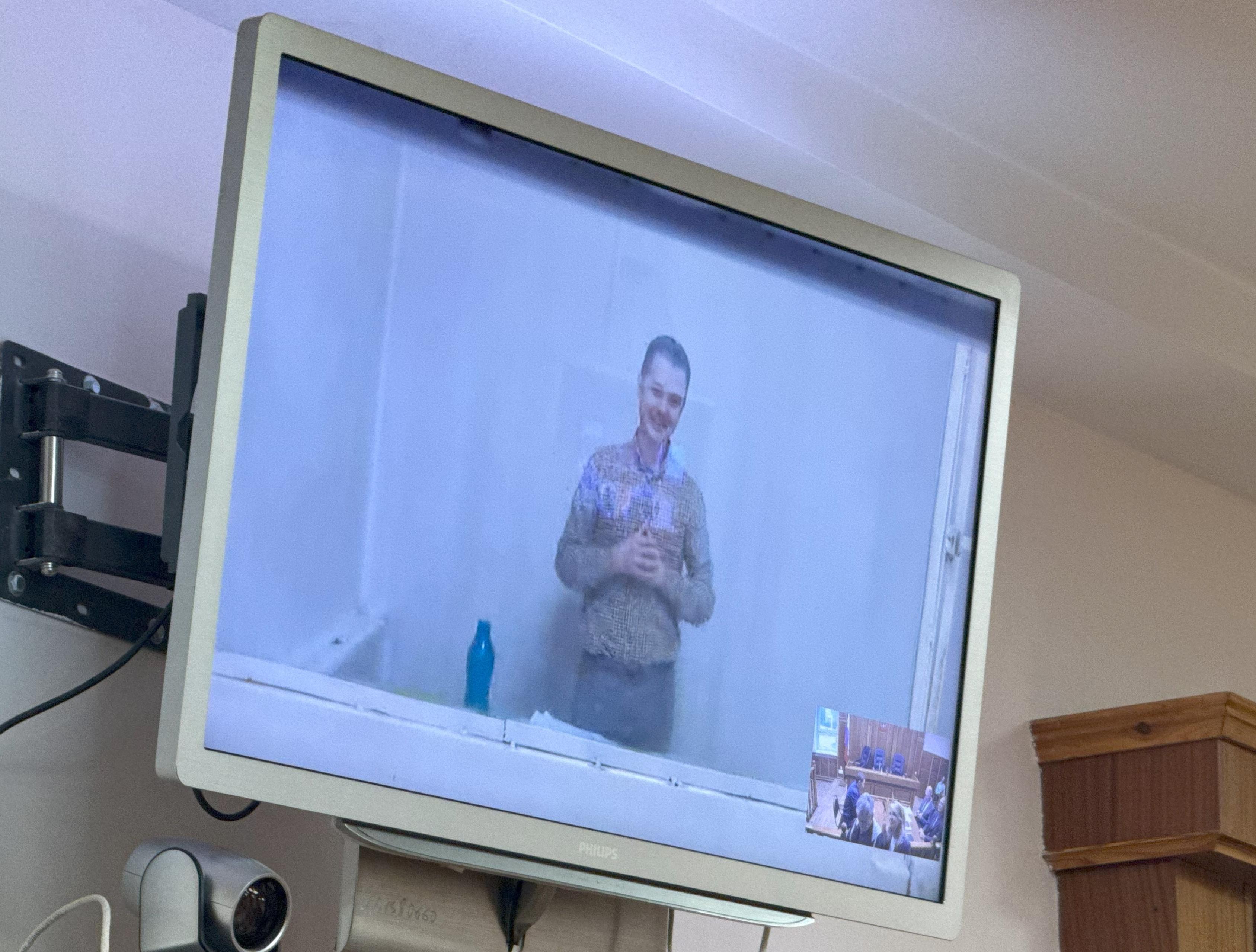 Interrogatório da testemunha de acusação Denis Polikarpov, que já assistiu às reuniões de adoração das Testemunhas de Jeová. No outono de 2018, ele começou a transmitir gravações de vídeo e áudio de reuniões com crentes para o FSB e a polícia. Quando perguntado se Polikarpov pode dar exemplos de quaisquer declarações extremistas de Khamatshin, ele acha difícil responder.