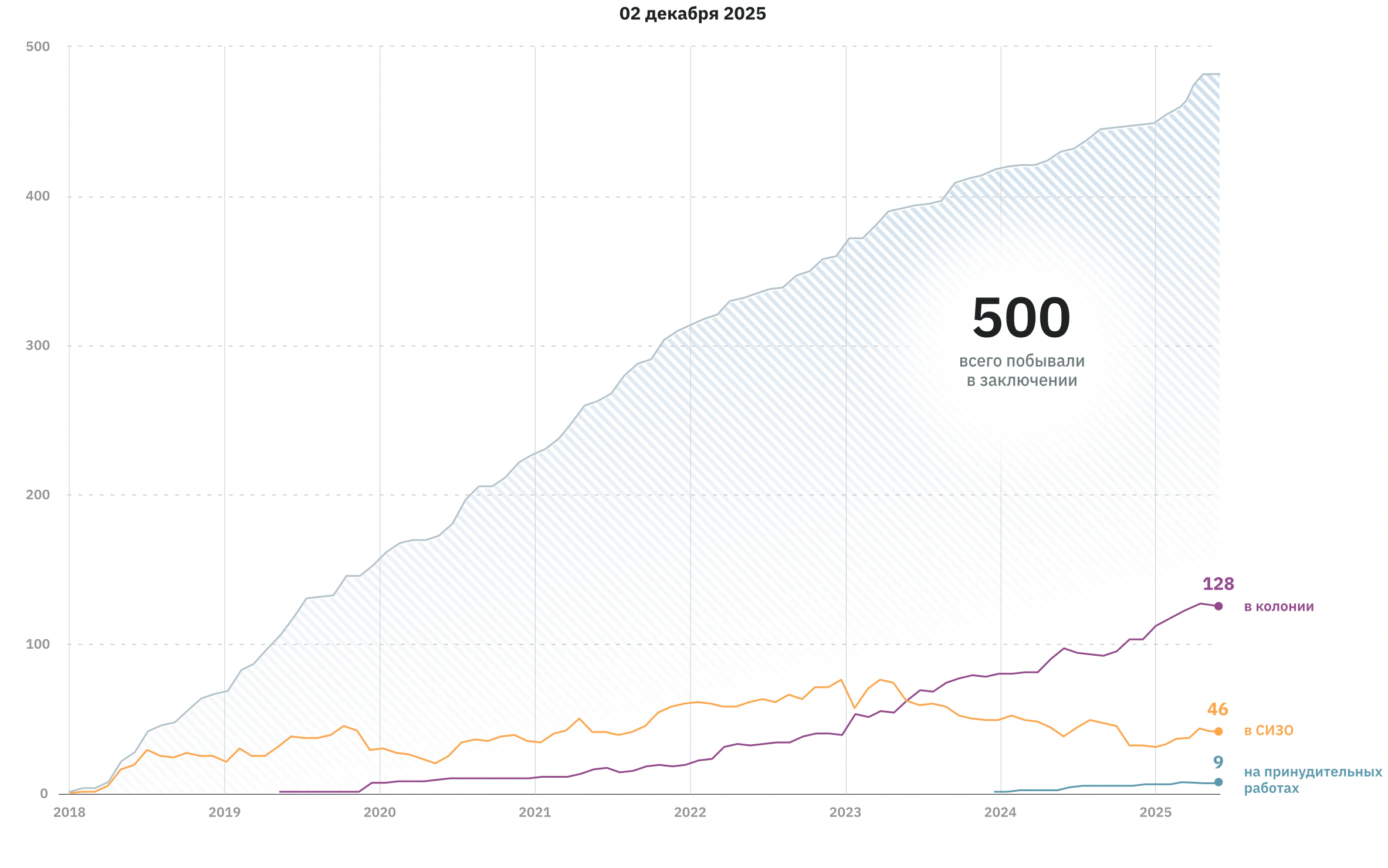 Очередная волна борьбы правоохранителей с запрещенной в России и признанной экстремистской организацией «Свидетели Иеговы» прокатилась по разным регионам. 10 февраля Абинский районный суд Краснодарского края приговорил к 7,5 годам колонии 63-летнего Александра Ившина. Столь длительный срок он получил за то, что посредством видеосвязи обсуждал со знакомыми Библию и учение иеговистов, а также исполнял религиозные песнопения. В эти же дни задержаны и обвинены в участии в экстремистской деятельности верующие в Москве, Биробиджане, Кызыле. Всего с 2017 года, когда организация была признана экстремистской и запрещена на территории РФ, преследованиям, в том числе уголовным, по данным правозащитников, подверглось более 220 человек.