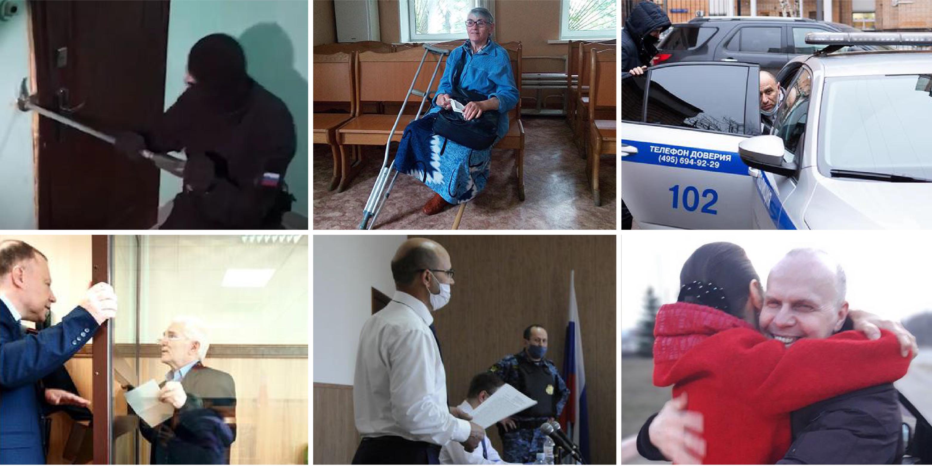 The repression of Jehovah’s Witnesses continued in 2020. Source of photo above left: Investigative Committee of the Russian Federation