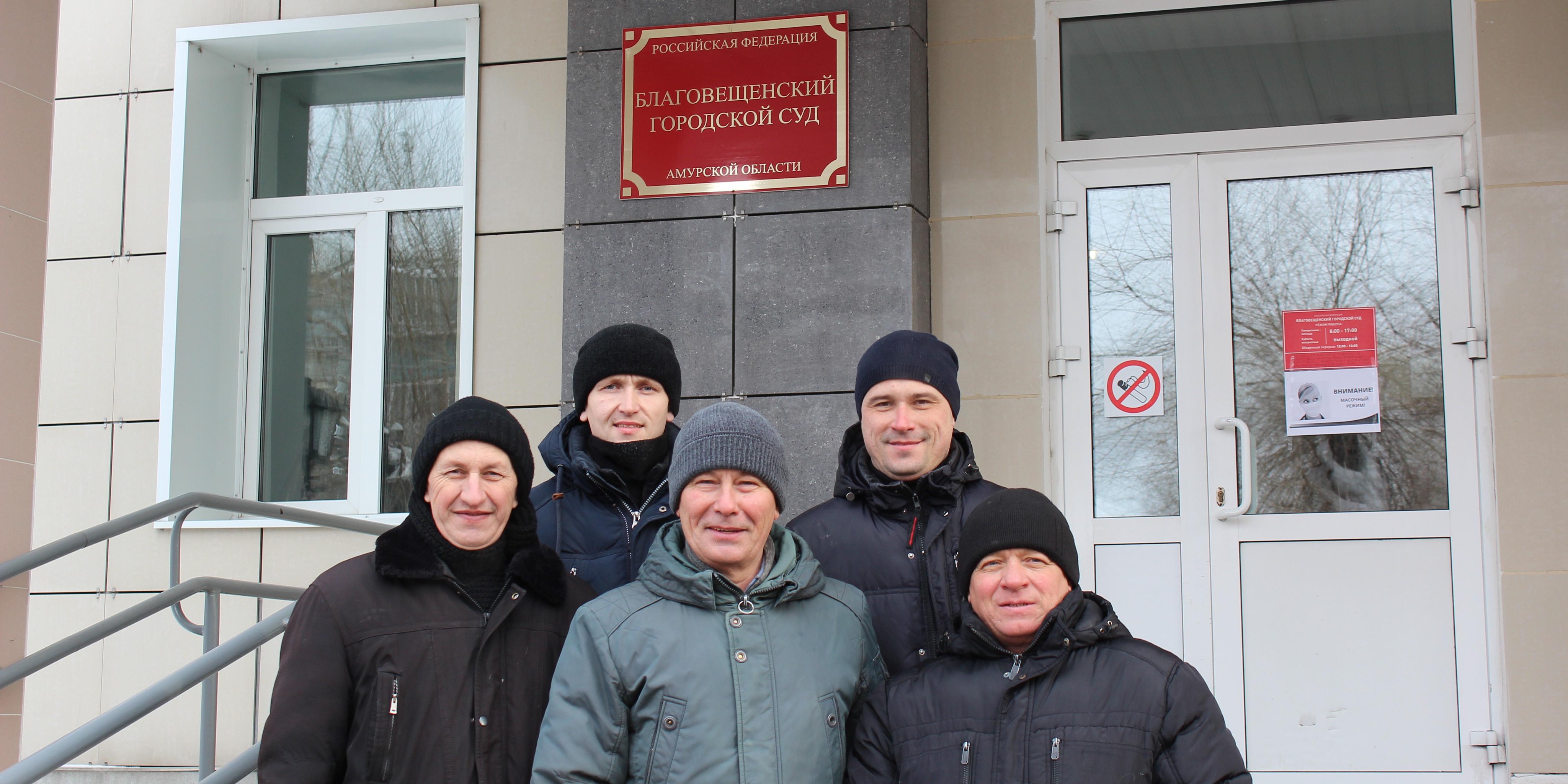 Amurin alueAmurin alueen Blagoveštšenskin kaupunginoikeuden tuomari Daria Varkalevich tuomitsi 21. joulukuuta 2022 Sergei Afanasiyevin 6,5 vuodeksi vankeuteen, Sergei Kardakovin 6 vuodeksi ja 4 kuukaudeksi vankeuteen sekä Sergei Jermilovin, Anton Olshevskin ja Adam Svarichevskiyn 6 vuodeksi ja 3 kuukaudeksi vankeuteen. Heidät pidätettiin oikeussalissa.
