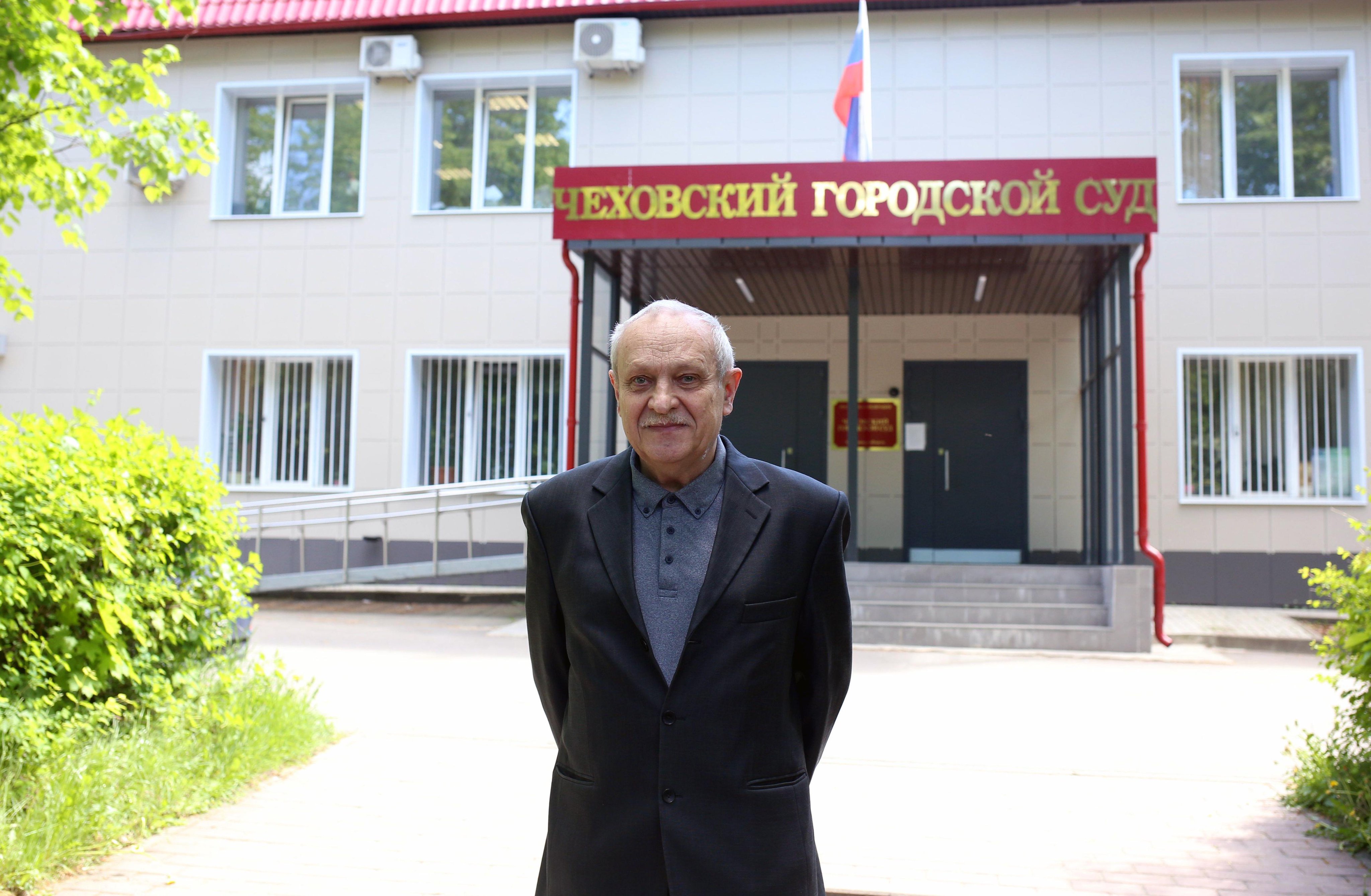 Фото: Виталий Никифоров, Юрий Крутяков и Константин Жеребцов у здания Чеховского городского суда, май 2021 года