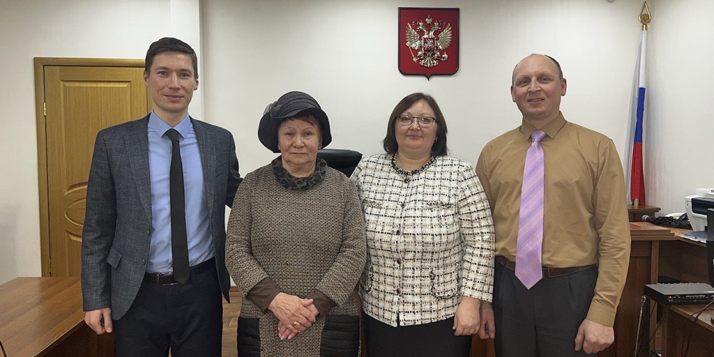 Супруги Баженовы и Вера Золотова вместе с адвокатом в зале суда. 31 января 2023 г.