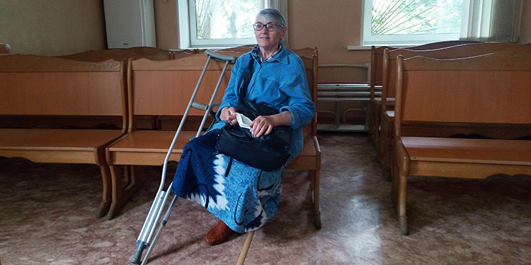 Na cidade de Primorye, o julgamento de um crente de 72 anos está chegando ao fim. Por ser deficiente, ela se desloca para audiências judiciais usando suas muletas